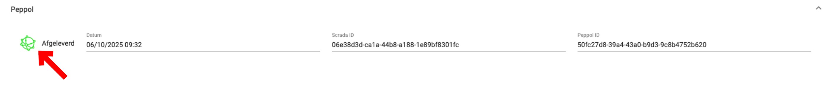 Dans les détails du document, vous pouvez également consulter le statut en bas, ainsi que la date correspondante. Le Scrada ID et l’ID Peppol y sont aussi affichés.