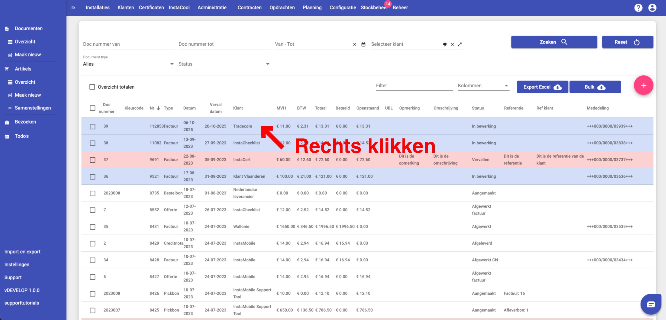 - Cliquez avec le bouton droit sur une facture pour laquelle vous souhaitez vérifier le destinataire