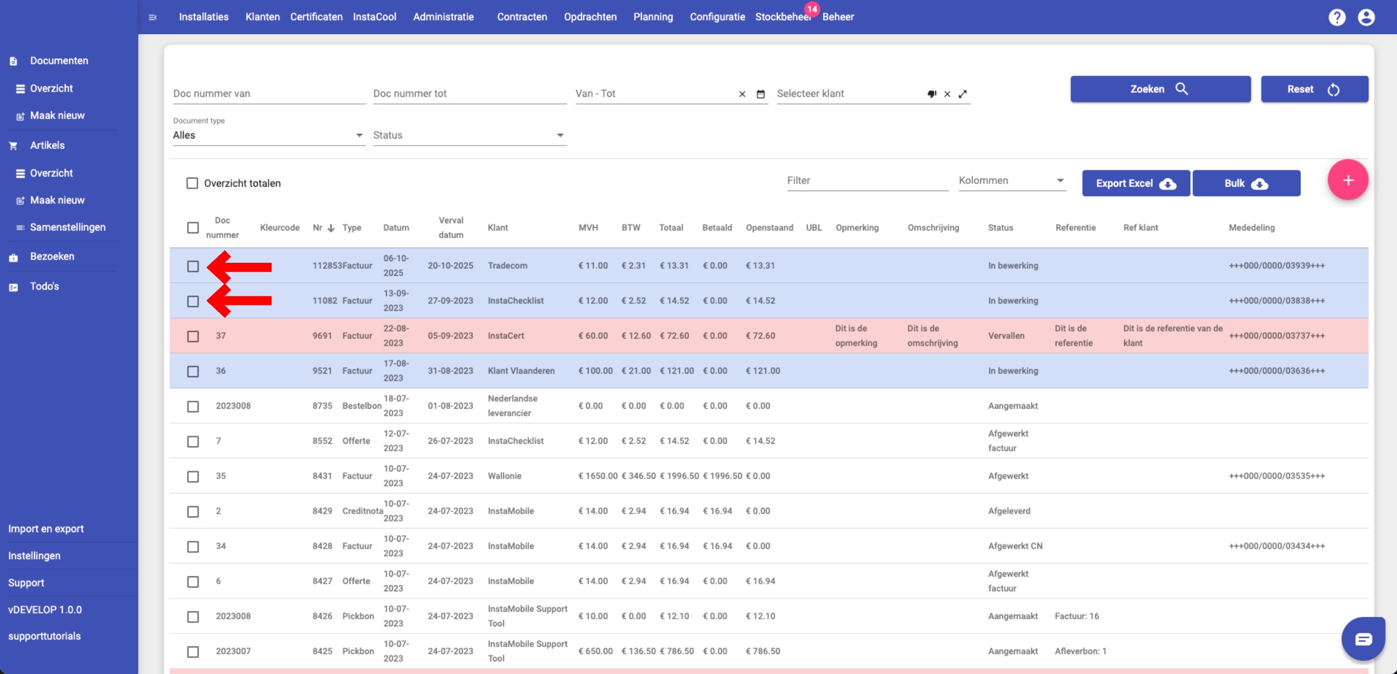- Je krijgt dan achteraan de lijn een icoontje te zien. De kleur vertelt de status.