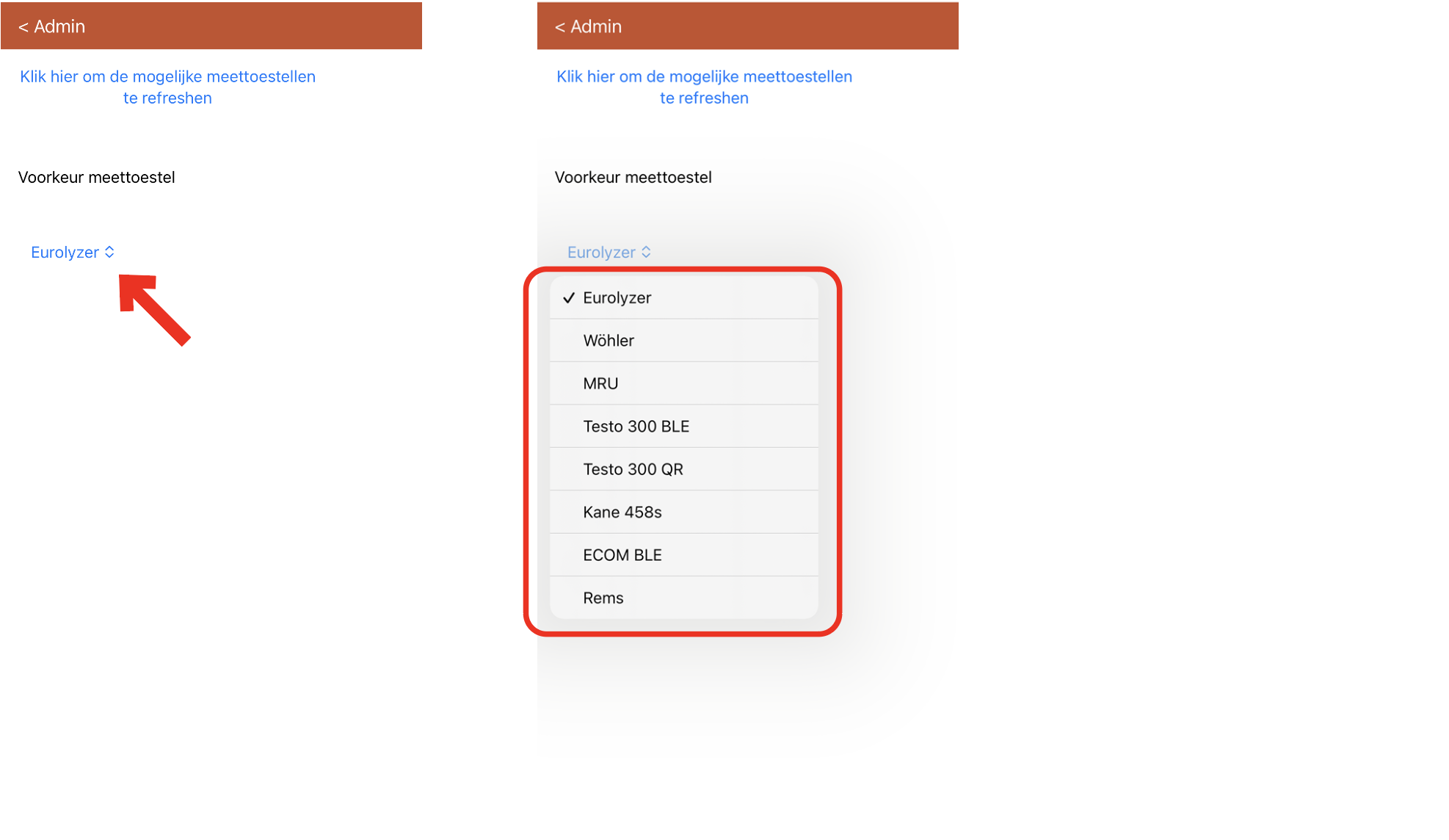 - Nu kan je bij Voorkeur meettoestel het gewenste apparaat kiezen.