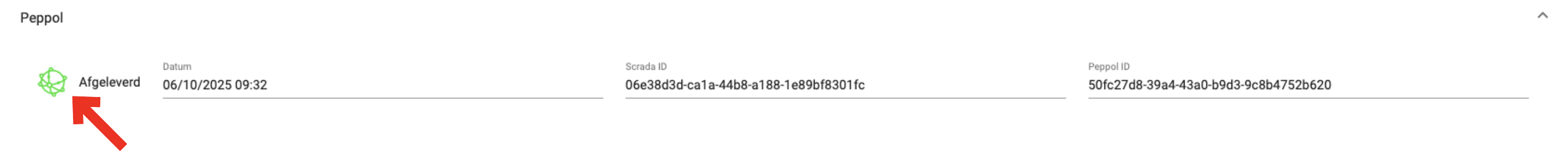 In het detail van het document kan je onderaan ook de status checken. Je ziet ook de datum die bij deze status past. En het Scrada en Peppol ID.