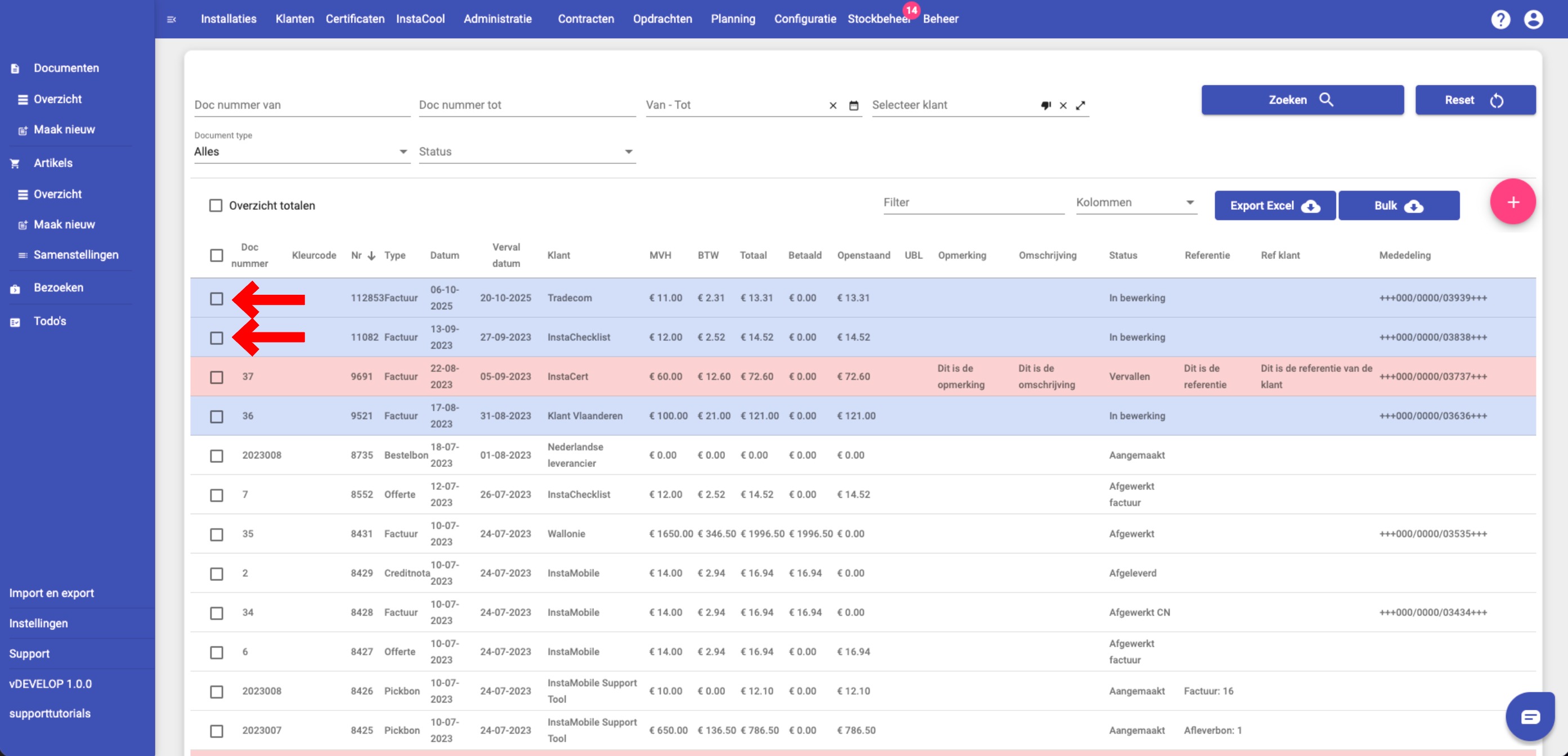- Indien je in bulk wilt verzenden, selecteer je alle gewenste facturen.