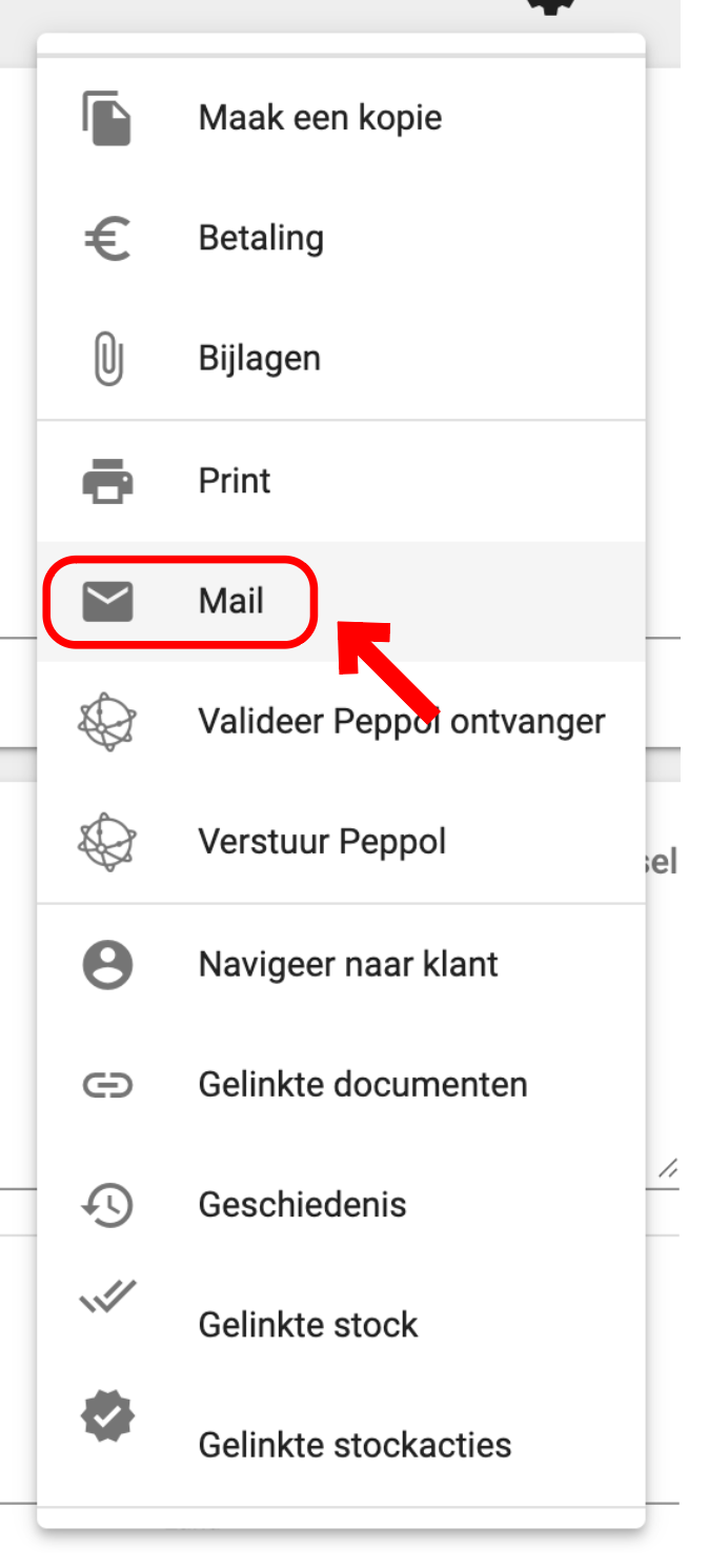 - Ga via de rechtermuisknop in het overzicht of via het tandwieltje in de detailpagina naar 'Mail'.